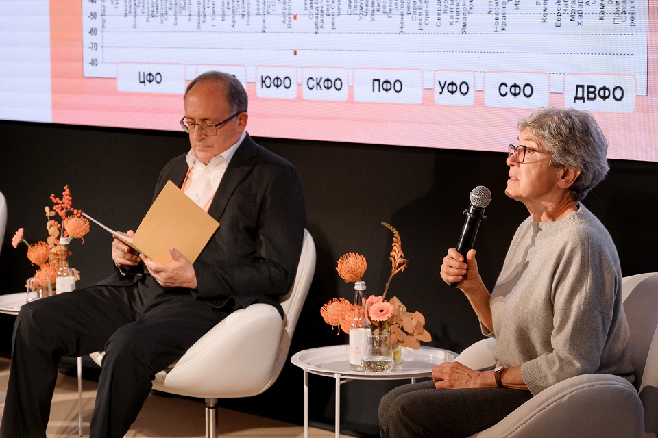 Уже в первый день эксперты задали тон разговору. Встреча с доктором географических наук, профессором МГУ имени М.В. Ломоносова, главным научным сотрудником Института социальной политики НИУ ВШЭ Натальей Зубаревич и вице-президентом НИУ ВШЭ, научным руководителем Центра исследований гражданского общества и некоммерческого сектора Львом Якобсоном была посвящена тому, как меняется конфигурация поддержки в регионах и какую роль в этих процессах играет доверие к некоммерческому сектору. По словам Зубаревич, даже в условиях замедления экономики крупные компании в моногородах продолжают финансировать культурные и спортивные программы для жителей, хотя такие инициативы по-прежнему носят локальный характер. Якобсон охарактеризовал сегодняшнюю филантропию как «скорее защитную, чем наступательную»: помощь направляется туда, где нужно поддержать базовую устойчивость, а не устранить системные пробелы.